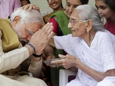 Narendra Modi with his mother after winning the elections. IBNLive image[/caption] “Nawaz Sharif ji has sent a wonderful white Sari for my Mother. I am really grateful to him & will send it to my Mother very soon,” Modi tweeted.Nawaz Sharif, along with other leaders of SAARC nations as well as Mauritius, had accepted Modi’s invitation to attend his impressive swearing-in ceremony at Rashtrapati Bhavan 26 May and made a two-day visit to New Delhi. IANS