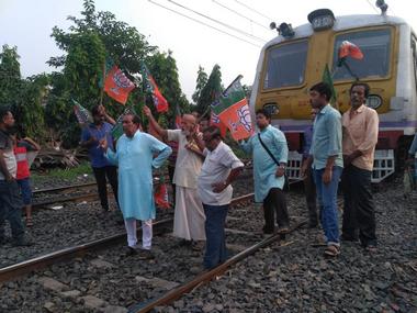 BJP supporters stop the train at North 24 Parganas. A Ghosh, Team 101Reporters[/caption] The crowd was later dispersed and the situation brought under control, a police official said. Stones were pelted at buses and tyres were set afire on roads to stop the traffic in Midanpore district, said a district police official. A huge police contingent was rushed to the spot to bring the situation under control, the official said. Rallies were taken out BJP leaders in Kolkata in support of the bandh. Senior TMC leaders and ministers were seen on the streets trying to ensure that the life remained normal and the common people did not face any problem. Stone pelting incidents were reported in Shyambazar and Sealdah areas in the metropolis. “The BJP has been trying to foment trouble in some areas and instil a sense of fear among the people. But the situation is completely under control and normal life has not at all been affected. We are monitoring the situation,” senior minister and TMC leader Partha Chatterjee said. BJP leader and MP Roopa Ganguly took out a rally in Gariahat area in support of the strike and accused the TMC government for “trying to stiffle dissent” in the state.