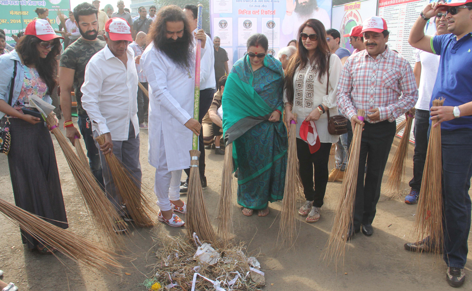Photos: Gurmeet Ram Rahim Singh of Dera Sacha Sauda takes part in Swachh Bharat Abhiyan
