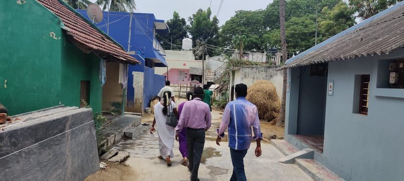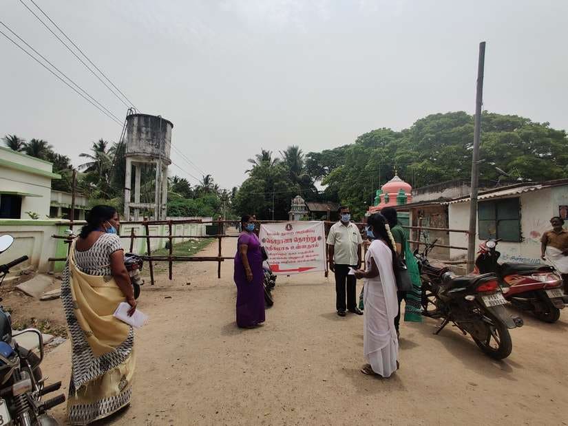 A sleepy middle-aged man walks out of his home to determine the source of noise, in an otherwise dead neighbourhood, as is the case with all COVID 19 containment zones. He acknowledges the familiar faces gathered just across the barricade erected around his compound. Leading the group is chief civil surgeon and block medical officer (BMO) Dr Aarthi R, who has worked in Kandamangalam Block for 22 years. This is her home ground. This is where she started as a medical officer and is now on top, as BMO. Alongside her, a team of health nurses and health supervisors, central among them 27-year-old Neela. This neighbourhood falls under the precint where Neela is a village health nurse. [caption id=“attachment_8476461” align=“alignnone” width=“825”]