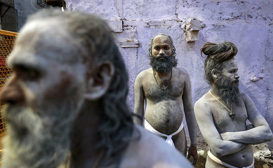 Naga Sadhus wait during a procession before taking a dip in a holy pond during the second “Shahi Snan” at Kumbh Mela. Reuters/Danish Siddiqui