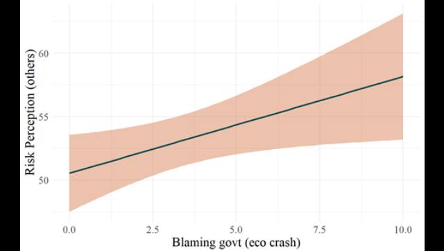 However, conspiratorial blame itself is not the core of the issue. Blaming others for the virus also made the respondents believe that they are not at risk of getting infected. When respondents believed that scientists were likely to be the cause of the virus, they believed that they were at lower risk of contracting the virus. Further, believing that the government was trying to hide an economic crash also led those leaning towards the Right to think that other Indians were at a higher risk of contracting the virus.