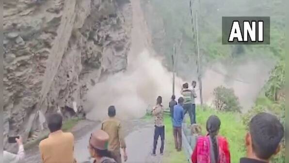 #WATCH | National Highway 05 blocked after sudden landslides happened near Bhawanagar in Kinnaur of Himachal Pradesh. Machines deployed to clear the debris pic.twitter.com/LgNdSEYudL