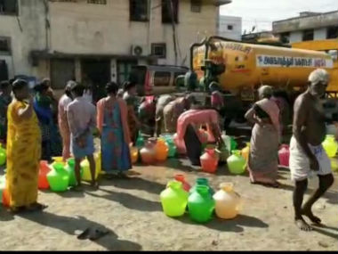 Chennai: The daily desperate wait for water, especially among lower income residents, is becoming longer and more uncertain for the 75 lakh people of Chennai. Long queues of men and women with eyes searching for the elusive water lorry are a regular sight in areas like Anakaputhur of Pammal area. “We are getting only five pots of water, that too on alternate days,” said an angry Seetha, who waits in the queue for hours every day. “What should we do with that? Cook or drink or use in the restrooms? The rich people order private water tankers, but what do we do?” Chennai requires 550 million litres per day to quench its thirst and meet other needs. However, poor rainfall has left the four major reservoirs located around the city virtually dry. According to the Chennai Metro Water Supply and Sewage Board data, two of the reservoirs at Sholavaram and Redhills contain water well below the required minimum storage levels, while the other two, Poondi and Chembrampakkam, have barely 21 mcft and one mcft of water respectively, which is 0.05 percent of the water the reservoirs had at this time last year. The Madras High Court had pulled up the government on its poor water management policy and raised questions on the implementation of rain water harvesting systems. It had sought a report on removal of encroachments on the water bodies. The high court has asked the Public Works Department to file a report on this within a couple of weeks. There is no water crisis, says minister [caption id=“attachment_6864441” align=“alignnone” width=“825”] The daily desperate wait for water, especially among lower income residents, is becoming longer and more uncertain. Image courtesy: 101Reporters[/caption] Chief Minister Edappadi Palaniswami blamed the media for creating this ‘hype’ of a water crisis. “Failure of monsoon has led to water scarcity, but things are under control, with the municipal administration and water supply minister working round the clock and handling things efficiently,” he claimed. Strangely, an official of the Chennai Metropolitan Water Supply and Sewage Board, who doesn’t want to be named, claimed that “there is no water crisis. About 900 lorries are supplying water to Chennai’s residents and they run nearly 9,400 trips every day. We are using smaller trucks of 2,000 and 3,000 litres capacity in areas with narrow roads and supply water round the clock. The desalination plants at Minjur and Nemmeli provide around 180 MLD per day. Water from agri lands in nearby districts like Thiruvallur and Kanchipuram are being used. We are also trying to purify the water from quarries in Guduvancherry and Vandalur for supply to Chennai.” Tamil Nadu Municipal Administration and water supply minister SP Velumani too claimed that there is no water crisis. “It’s a normal sight to see hundreds standing for a water tanker during summer,” said Velumani. “We did not have rain for more than 190 days. Hence, there is a shortage of water, but we are handling it efficiently. Nearly 110 wells from agriculture land in Thiruvallur district have been used to extract 60 MLD of water which is being distributed among the people. The government is in the process of finding some more agriculture lands with wells so it can provide additional 8 MLD water to the city. There is no water crisis in Tamil Nadu." But drawing water from the agriculture fields is causing unease among farmers. “The government is buying 1,000 litres of water for just Rs 2.50 per litre,” said Boopalan, a farmer from Thiruvallur. “But this is depleting our ground water, how can we raise our crops? Our entire livelihood is gone. And money for the water extracted is also not paid on time. We have pending bills for two months that the governments has to clear." Drying up business, essential services [caption id=“attachment_6864451” align=“alignnone” width=“825”]