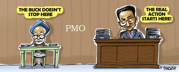 We have Dr Manmohan Singh, our prime minister, the man who should be calling all the shots and taking control of the country. Increasingly though, it’s IAS officer and principal secretary to the PM, Pulok Chatterjee, who is the power-house. Whatever is issue being debated by the PMO, Chatterjee is the man on the spot. How powerful is he? Just search for him in Google news and you have the answer. Our cartoon today is by S Nagesh. [caption id=“attachment_232737” align=“alignleft” width=“620” caption=“Cartoon by: S Nagesh”]  [/caption]