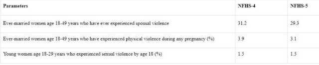 Domestic violence, including violence during pregnancy down from NFHS-4 survey period. No increase in sexual violence against girls under 18 years was reported under Modi regime