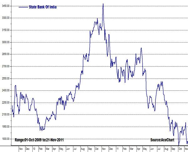 The stock today hit a two year low after the bank advertised a rate of 8.5 percent on short term deposits for a period of 7 to 180 days. The rate offered by SBI is one of the highest in the industry. Though the rate of 8.5 percent is for deposits over Rs 1 crore, those below this amount will be getting a 7 percent interest rate.