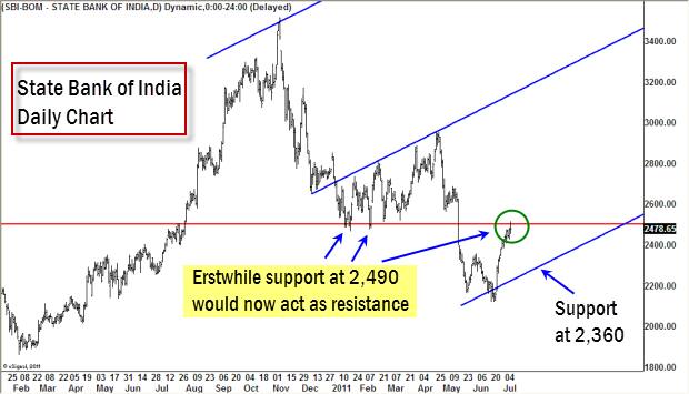 The failure on Friday to move past the erstwhile support at Rs 2,490 is a bearish sign. Unless the stock closes above Rs 2,490, it would be vulnerable to a slide to the short-term support at Rs 2,360.