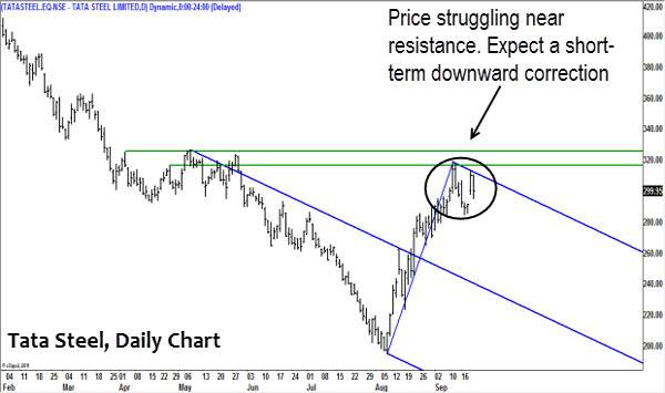Tata Steel (Rs 300): This stock has been one of the top performers in the past few weeks. The recent rally has pushed the stock to a key resistance area at Rs 318-320 range. The failure to clear this resistance is a sign of weakness and the stock could now slide to the immediate support at Rs 265-270 range.