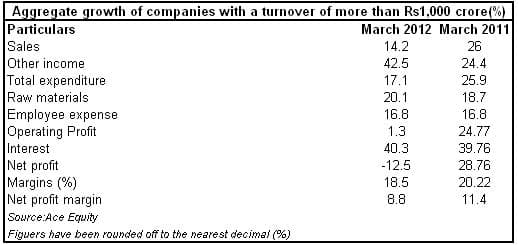As is usually the case, larger companies (those with a turnover of more than Rs 1,000 crore) managed to post a better sales growth of 14.2 percent. Of the 102 companies in this group, 45 posted more than 20 percent growth in sales. Fertiliser companies have topped the list this  quarter with a splendid growth in sales. Mangalore Chemicals & Fertilisers, Chambal Fertlisers and Coromandel Fertiliser reported a more than 130 percent growth in sales. Overall, 16 companies posted a fall in sales.