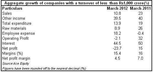 It’s been a bad quarter for smaller companies (companies with a turnover of less than Rs 1,000 crore). While sales grew by just 10.8 percent, profits slumped by 23.7 percent. Of the 404 companies in this group, almost 100 companies posted a more than 30 percent growth in sales while 109 reported a fall.