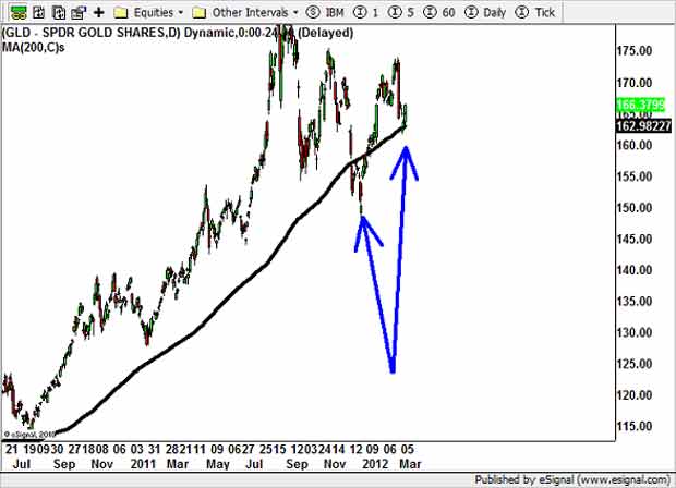 In 2008, even when prices were below the 200-day average, gold moved sideways and eventually rallied. Given the fact that the US Fed has pumped a lot of dollars that can lead to inflation once the economy picks up, long term investors may still stay long on gold with a tight stop-loss.