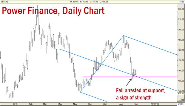 Power Finance Corporation (Rs 160.35): A look at the daily chart of the stock indicates that the sharp crack in price was arrested right at the crucial support level. This is a sign of strength and suggests that buyers are active at the Rs 150-154 range. Given this backdrop, a rally to the immediate resistance at Rs 176 appears likely.