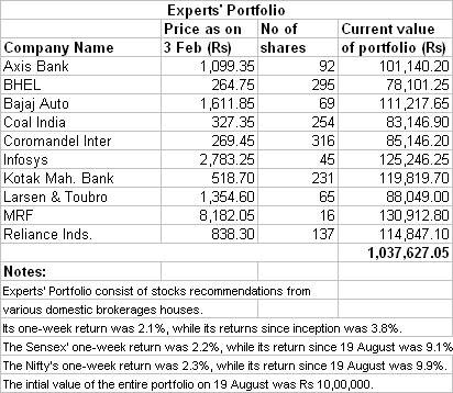 The brokers’ portfolio also added on 3.8 percent for the period since inception _( See table )._The biggest winners here were MRF (up 30 percent) and Infosys (25 percent).