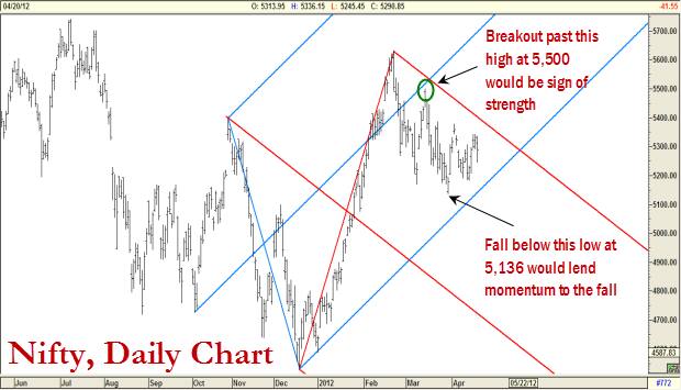 S&P CNX Nifty (5,290.85): The index did a whole lot of nothing during the week gone by. This price action does not invalidate the bearish view featured in recent weeks.