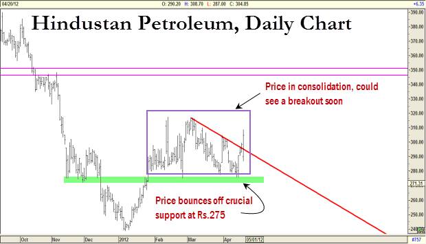 Hindustan Petroleum (Rs 304.85): The stock has been consolidating in a narrow trading range in recent weeks. The price action on Friday indicates that the stock could seek higher levels. A breakout past the immediate resistance at Rs 316 would be a sign of strength and indicate that the stock could rally to the major resistance at Rs 345.