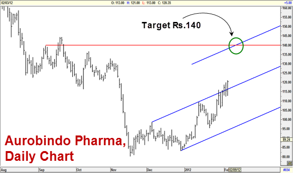Aurobindo Pharma (Rs 120.35): The stock is in a short-term uptrend and the chart patterns indicate that a rally to Rs 140 appears likely. The stock may be bought with a stop-loss at Rs 94, for a target of Rs 140.