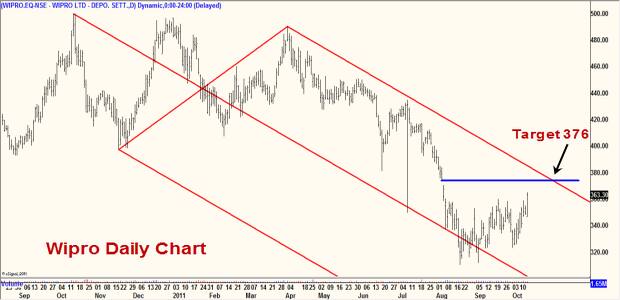 Wipro (Rs 363.30): After an extended period of consolidation, the stock registered a breakout on Friday. The short-term outlook is bullish and a rally to the immediate resistance at Rs 376 appears likely. ( **view chart** )