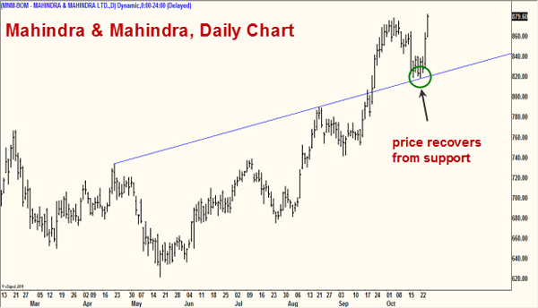 Mahindra & Mahindra (Rs 879.60): The stock has been in an uptrend in the past few weeks. The sharp rally in the last couple of trading sessions indicates that the next leg of the rally is underway.