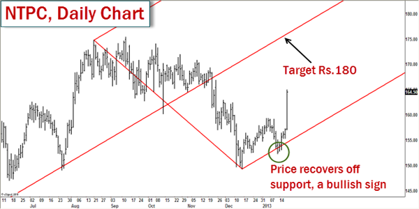 NTPC (Rs 164.50): This stock has been a huge underperformer in the past several months. The recent price action, however, indicates that the buyers are getting active in the counter. The stock could rally to the immediate resistance at Rs 180.