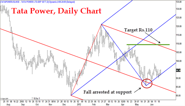 Tata Power (Rs 94.50): This stock has been in a downtrend since its 21 February high of Rs 121.20. The recent price action suggests that the downtrend is complete and a rally to Rs 110 appears likely.