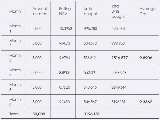 Image Courtesy: Canara Robeco[/caption] But, it is natural for even the most disciplined investor to get anxious when markets become very volatile and accumulated wealth starts deviating from desired growth path. The most instinctive action in such conditions is to stop further investments and even withdraw accumulated wealth if volatility persists for longer. But, would that be a wise thing to do? Let’s sit back and analyse the situation… Let’s go back and try answering the question as to what was your purpose of making systematic investment in the first place? Was it to time the market and make short term tactical decisions or was it to save and accumulate wealth over a period of time – a well thought through decision to build wealth for you and your family? It most surely was the later. If building wealth was your ultimate goal, there is every reason for you to be happy that your cost of purchase is lower and you are able to get more units for each of your SIP instalments. Here’s how…
