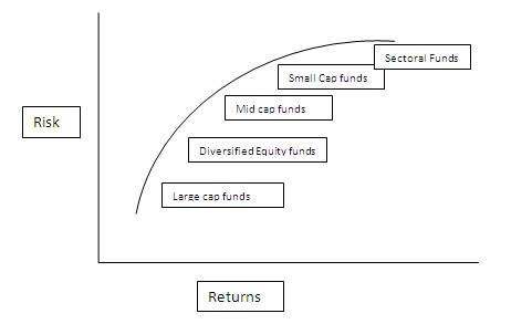 Illustration disclaimer: The above example is only for illustration purposes & shall not be construed as indicative yields/returns of any of the Schemes of Canara Robeco Mutual Fund.  To make the best out of sectoral funds, an investor would have to enter the fund at the right time. To make the best out of sectoral funds, an investor would have to enter the fund at the right time. Risk – Return trade off of Equity funds: