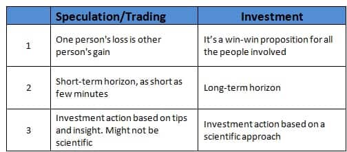 Image Courtesy: Canara Robeco[/caption] No wonder then that the wise men compared investing money in a stock market to betting/gambling. In both these cases, you are following the trend and reacting to it on a regular basis with a hope that the investment you have made would yield good returns in the short run. In most cases people lose money and very few “lucky” ones make a fortune. But next day it’s uncertain again. So equity investments are very risky if invested this way. We fail to differentiate the basic difference between speculation and investment.