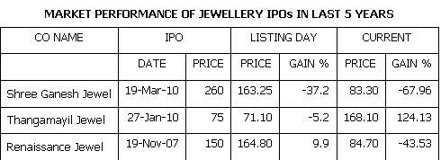 In fact, sans Thangamayil, none of the jewellery IPOs that hit the market in recent years is currently quoting above their IPO prices. The last jewellery issue viz. Shree Ganesh, which was incidentally lead-managed by one of the book-running lead managers of TBZ, Avendus Capital, is currently quoting at 68% discount! Going by this TBZ’s price does not exude much optimism.