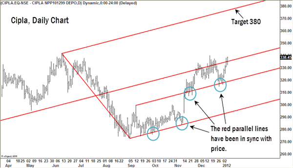 Cipla Ltd (Rs 338.45): The stock is in an uptrend since the 6 September low of Rs 276.20. The recent uptrend is likely to extend up to the short-term resistance at Rs 382.