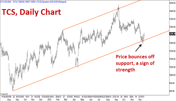 TCS (Rs 1,258.70): This stock has been in a downward correction over the past few weeks. The price action last week indicates that the stock has completed its correction and could seek higher levels in the near term.