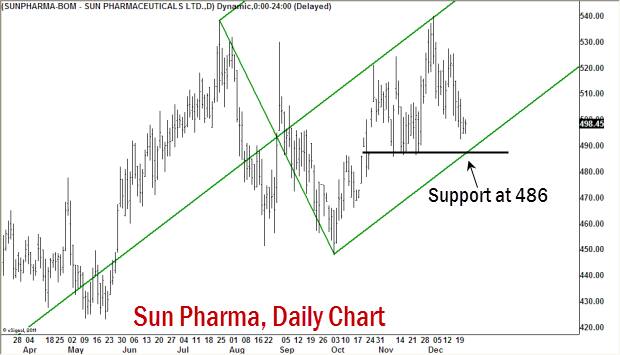 Sun Pharmaceutical (Rs 498.45): The stock now is traded just above the crucial support in the Rs 486-490 range. As long as this support is not breached, there is a fair chance of a rally to the immediate resistance at Rs 540.