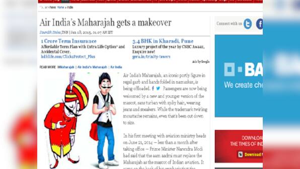 As a single, female traveller, the one thing I bank on while travelling on a flight – any flight – is a very low chance of getting molested, eyeballed or pick-pocketed on a plane and being left to protect myself. The airlines I choose to fly with have at least a veneer of being safe. You believe that the crew will protect you if something untoward happens. Take, for example, an airline that has a friendly, avuncular, older gentleman standing with his hands folded in welcome as a mascot: it just iterates the air of safety. The Air India Maharajah exuded a feeling of friendliness and hospitality. Yes, he looked like a hybrid of Vinod Dua and Parikshit Sahni in fancy dress, but all in all, he seemed an affable, trustworthy sort. Frankly, he was the only thing going for Air India (and perhaps their hot meals). But the Maharajah has been killed off in one cruel move. In his stead, Air India has revealed their new mascot. And just the sight of him makes me want to stock up on pepper spray before boarding an Air India flight. [caption id=“attachment_2053589” align=“alignleft” width=“380”]  Screengrab of ToI Story[/caption] Let me describe the new mascot to you. He still has a twirled moustache, but gone are the royal turban and robes. Instead, we have a dude with a man purse, threaded raised eyebrows, spiked hair, and a smartphone that has his full concentration. He has obviously been inspired by Ranveer Singh’s roles in Band Baaja Baarat and Goliyon ki Raasleela: Ram-Leela. Why would I feel kindly towards an airline mascot who is busy playing games (or watching porn) on his smartphone, instead of paying attention to the traveller (ie me)? He looks like the louts you see in the corner of Lajpat Nagar market, who wink at you and call out “Oye kya maal hai” in the hope of some attention. The new mascot is worrying for reasons other than his roadside Lothario attributes. You see, this is what Air India thinks the “aam aadmi” looks like. Back in June 2014, it was reported that our Prime Minister Narendra Modi had met with aviation ministry heads and stated that the aam aadmi must replace the Maharajah as the mascot of Indian aviation. This was to help take forward Modi’s vision that the aviation ministry would formulate policies to make flying possible for the common man, and not just the rich. That Air India officials think that the aam aadmi is what we in Bengali term a changra from Beckbagan in Kolkata, is very disconcerting. Going by the mandate laid down by Modi, it would have made more sense if the revamped mascot resembled Arvind Kejriwal or maybe even RK Laxman’s Common Man. Instead, his hair looks like he’s stuck his finger in an electric socket and the rest of him looks like he’s about to take his dog named Balwinder out for a walk. According to news reports, an Air India official who was involved in this transformation of the Maharajah, said, “The new Maharajah is aligned with the modern times and with the new AI, which is also trying to cut flab to become a lean commercial entity. The Maharajah now has a leaner, young, sporty and more dynamic look. He has made a big comeback in our ad campaigns. We are using 27 different pictures of the new Maharajah to showcase some of the destinations we fly to”. Perhaps the new Maharajah will also be seen as a member of the Indian cricket team (Shikhar Dhawan?). Now this isn’t the first time that the Maharajah will have separate avatars. Earlier, he’s been shown as a Frenchman hawking dirty pictures in Paris, a lifeguard checking out women in Sydney, dancing the can can in Paris. He’s hardly been fuddy duddy. But none of these past makeovers turned him sleazy, lecherous and fashion-challenged, all in one. The new Air India mascot is the boy your mother warned you of when you were young and impressionable. Somewhere in mascot-land, you can imagine Appu of Appu Ghar, the Amul girl, Asian Paints’ Gattu and the dancing Nirma girl huddling in a corner and plotting how to excommunicate this horror of a mascot. To borrow Kiran Bedi’s words, looking at the new Maharajah, you can’t even say that he has a “beautiful face”. I get that the prime minister and the aviation ministry want to make Air India more accessible, but you don’t do that by killing the only redeemable feature of Air India. According to the two people who created the earlier Maharajah, commercial director SK “Bobby” Kooka and JWT’s Umesh Rao, “We call him a Maharajah for want of a better description. But his blood isn’t blue. He may look like royalty, but he isn’t royal”. The Maharajah was supposed to symbolise graciousness and high living. What’s wrong with that? I’d like a little graciousness and high living after shelling out thousands to get from one city to another. Honestly, between Air India’s delayed flights and very grumpy crew, and the new and far-from-improved mascot, their statement to the press should be, “We don’t call him a Maharajah because we have no description for him. His blood is far from blue. He may look like a lout, and there’s a very high possibility that he is one”. If this is a portrait of the common man, India is doomed.