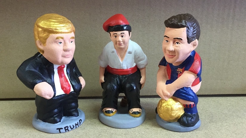 Setting up a nativity scene for Christmas celebrations is a given. A walk around any city, where Christmas is celebrated, shows you that familiar scene from the manger which marks the miraculous birth of baby Jesus. We are all familiar with little statues of Mary and Joseph, the shepherd boys, the Magi, three wise men, the barn animals and so on. But in Barcelona, and in effect Catalunya, there’s an additional member added to this mix. The Caganer. Or its literal English translation — The Defecator or The Crapper! Yes, that is the most polite way to put it. This is basically a clay or ceramic-figurine of a peasant in a squatting position ready to defecate. From the front, everything looks sane, but turn the figure around and things get interesting. It’s not purely symbolic, but actually shows graphic details such as a figurine with bare butts and a glob of ‘brown-coloured deposit’ below them. This figurine forms part of the Nativity Scene in the Catalan regions. [caption id=“attachment_3181546” align=“alignnone” width=“825”]  Costumers look at clay “caganers” at the Santa Llucia Christmas market in central Barcelona. Reuters Photo[/caption] Fertilising the land In the Indian construct, a defecating figurine as part of a holy scene sounds disturbing. But in Catalunya, this is a tradition which has its roots in the 18th century. Joan Amades, an eminent 19th century Catalan ethnologist defines the Caganer is a customary figure in the ‘pessebre’ or the nativity scenes. In those days, the Caganers’ ‘deposit’ fertilised the ground of the Nativity Scene, thus keeping it fertile for the next year. Alongside, it also ensured a healthy body and peaceful mind. Placing it in the manger also ensured good luck and joy. Failure to put a Caganer within the manger brought adversity as well, according to Amades. It happens to be the most popular nativity figure in Catalonia. “When I was a kid, every December I prepared the pessebre in my living room with my father. It was like a game, to find the right spot to place the Caganer, hide it behind the bushes or behind a piece of cork that simulated the mountains of the landscape”, reminisces Marta Ballesta, a journalist living in Barcelona. As it would be disrespectful to have a defecating figurine anywhere near the crib, the Caganer forms part of the backdrop. In fact, in elaborate nativity scene installations, children play a game of spotting the Caganer. “For farmers and peasants, in the olden days the excrement could act as a fertilise as there were no agro-chemicals then. The Caganer in effect is a symbol of fertility,” says Ballesta. In fact, legends even says that a farmer would have a bad agricultural output if he did not put a Caganer in the Nativity Scene. [caption id=“attachment_3181548” align=“alignnone” width=“825”]  A man makes a Pope Francis “caganer” with a mould in a pottery in Torroella de Montgri, near Girona. Reuters Photo[/caption] Hand-made and hand-painted El Caganer is a family run establishment which specialises in hand-made and hand-painted Caganers. In operation since 1992, this North Catalunya-based establishment started off by making all the elements of the Nativity Scene. Since the last 10 years however, they have specialised in making Caganers. “Caganers are mostly used in Christmas, but nowadays it is fast becoming a souvenir from the Catalan culture,” says Marc Alos, an artist with El Caganer. And the demand is not just in Catalunya, but global. “Some years ago, we sold mostly directly in Barcelona by Christmas time, but now the product has become popular overseas,” say Alos, boasting of a client list from USA, Spain, France, Germany among countries. He also pointed to the fact that around 50 percent of all their Caganers are sold outside Catalunya. [caption id=“attachment_3181552” align=“alignnone” width=“825”]  While Trump and Messi Caganers are popular, the traditional one in the red Barretina sells the most. Image courtesy: El Caganers[/caption] Shakira, Messi, Narendra Modi Caganers, anyone? While the provenance of the Caganers may have had a cultural significance, commerce has eventually reared its ugly head. Traditionally Caganers are ceramic or clay figurines showing the peasant wearing a white shirt, black trousers and a red floppy hat known as barretina. Sometimes the peasant also has shawl wrapped around the body. But of late, celebrity Caganers are a big draw in the Fira de Santa Llúcia Christmas market in Barcelona. Everyone from famous footballers to politicians to film stars have their Caganer equivalent, ready to be purchased. A look at their website, and you will notice different categories, with Caganers depicting everyone from the Pope to Messi to Trump to Queen Elizabeth to our very own Narendra Modi. Yes, these figurines when seen from the front appear normal, but turn them around for a chuckle or two. Considering the general tolerance levels of the world going down, how does El Caganer get away with this depiction of celebrities? There’s even the Pope in the list! “Here in Catalunya, celebrities are pleased if we depict them as Caganers! It is not meant to be offensive, but is looked at with honour,” says Alos. There has never been an instance when the shop had to stop production of some popular celebrity Caganer. Having a Caganer in the likeness of the Pope, in Catalunya which is a majority Catholic region, speaks volumes. [caption id=“attachment_3181554” align=“alignnone” width=“825”]  Tio de Nadal. Image: Fira de Santa Llucia archives[/caption] However, when it comes to the locals, the traditional figure is what is bought the most. According to Ballesta, in Catalan families the nativity figures are usually the same and are recycled every year. “There are families who have a tradition of adding on new figurines every year to expand the Nativity Scene. A few years ago, we saw these celebrity Caganers. The