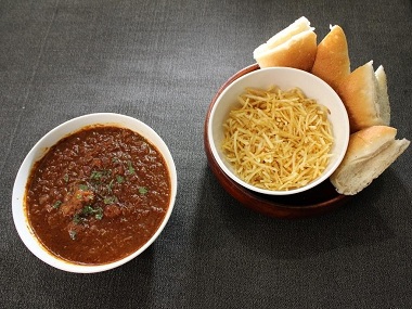 A thick spicy gravy with a sweet note to it — that’s what the jardaloo salli murghi is. Dried apricots gives this curry the sweet taste that balance the spices and robust consistency. The potato shreds (salli) give it a much needed crunch.