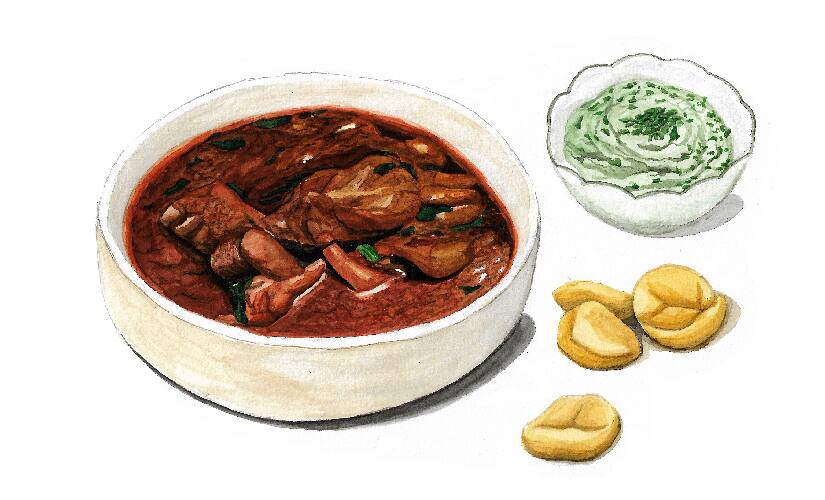 When one thinks of the city of Surat, organ meat and dried fish aren’t the images that come to mind. This erstwhile port city is synonymous instead with undhiyu (the winter delicacy made with papdi beans which are available only here) and farsan (snacks) like khamni and locho. In what may come as a surprise, data from the Sample Registration System (SRS) baseline survey by the Registrar General of India reveals that Gujarat has more meat-consuming people than Punjab, Haryana and Rajasthan. Once an important trade centre, Surat is home to about 2.5 lakh Khatris and 4 lakh Ghanchis, who are meat-eating communities. The contribution of these two communities to Gujarat’s culinary landscape is an array of meat gravies, kebabs, biryanis and vegetables cooked with meat, among other dishes, and the real diversity and flavour of the state’s non-vegetarian food are to be found in home kitchens and personal recipe diaries. While Ghanchis were traditionally in the business of owning provision stores and oil pressers, Khatris had textile looms. People from these communities marry within the same caste — and sheri (lane) — and therefore their population is concentrated in the city itself. “You will see traces of Mughal culinary influences in our cuisine,” says Chef Dolcee Bachkaniwala, a Khatri, who was a contestant of Masterchef India Season 2 and runs a cooking institute in Surat. Golwad, the area where the other meat-eating community — the Golas — stay, Makaipul and Nanpura are some of the popular meat markets in Surat. For most, meat is not an indulgence but rather a routine part of everyday meals. [caption id="" align=“alignnone” width=“825”]  During Kerigado, Khatri families offer an elaborate non-vegetarian meal along with aam ras. Illustration by Shawn Dsouza[/caption] “They say ‘khatri ni jeeb ne daam devo che’ which means a Khatri’s tongue should be burnt with hot coal, because all the laborious cooking could be done away with,” Ami Jariwala, a chartered accountant and home cook jokes about her culinary heritage. Some traditional dishes made by these two communities include the green garlic-sprinkled lasan kaachu, which is made with chicken liver and runny eggs, and a Khatri mutton delicacy called tapelu, which is slow roasted on a wood fire in a large vessel called ‘tapela’. Tapelu tastes better when cooked in a large quantity, and Khatri weddings call for a dedicated day when tapelu is prepared. The dish has a special place in menus prepared for festivities and occasions. Jariwala describes tapelu as being a “popular, oil-slicked and heat-filled dish that leaves reddish-orange stains on the plate” which is eaten with fermented, bite-sized puris. She takes me through many of the lesser-known delicacies, “What are not-so-commonly available are dishes like khariya (legs, bone marrow), mutton samosas, papdi ma mutton (non-vegetarian undhiyu), papdi ma khariya, mesoor, kaanda maamna, kaanda-jheenga (prawns), dara ni biryani (rice cooked with Indian salmon), mutton biryani, hojri-fefsa (the stomach and lungs of a goat), and talli-kaleji (liver) among others.” Such recipes are considered heirlooms. Neither the meat nor the ingredients and cooking techniques are singular to Ghanchis or Khatris, but the taste of the food prepared in no two households is the same. Hemali Bodiwala, who runs a catering business, says that it is the chicken masala that lends a unique flavour to Ghanchi food. Her bheja masala made in a red gravy and kaleji prepared in a green masala are favourites among Surtis. Each family in the city also has its own unique ‘green masala’. “The proportion of green chilly, ginger, garlic (green garlic in winters) and fresh turmeric root is critical. We don’t use turmeric powder. Our garam masala is also different. There are few stores in Surat which sell this garam masala, such as the Cheeba Gandhi store,” says Chef Dolcee Bachkaniwala. During the cooler months of the year, Surat’s markets see an influx of fresh green garlic (surti leelo lasan), which is strong in flavour and tender in texture. Women cooks are most particular when it comes to the way this garlic is chopped; it has to be very finely done. One dish where this type of garlic features prominently, the mutton nu kacho, is a raw mutton dish where the meat is mashed, kneaded like dough, and finally cooked using the heat of the garlic, says Chef Bachkaniwala. Gujarat boasts of a long coastline with fresh fish available easily, and the Ghanchi community’s favourite is the bumla (Bombay Duck). It contains high water content and the wisdom passed down generations is that if you don’t cook it right, it could turn lumpy. “When fresh bumla isn’t available, my mother dips into her stash of dried bumla. You soak it in water and refresh it, and cook it with fried kanda (onion) and spices,” says Vicky Modi, a Ghanchi food enthusiast. [caption id="" align=“alignnone” width=“825”] .jpg) Khatri weddings call for a dedicated day when tapelu is prepared. Illustration by Shawn Dsouza[/caption] Because Gujaratis are viewed as being conservative, many are unaware that the offerings some communities make to their family deities also consist of meat dishes. “The Bagdawala families offer jhinga-baigan (a dish made with prawn and brinjal), whereas other gotras offer kaanda-maamna for kuldevi pujas (prayers offered to family deities)," Ami Jariwala says. “Dalwalu mutton (goat cooked in lentils) is eaten on the Kagdi Teej fast which falls on the fourth day of Rakshabandhan. Kerigado is another awaited occasion; Khatri families offer an elaborate non-vegetarian meal along with aam ras (mango pulp) for all their relatives. ‘Gado’ means time span in Gujarati. This gathering is held to celebrate the king of fruits with mutton samosas, maamna (kheema kebab) and a variety of chicken dishes,” Chef Bachkaniwala adds. On auspicious days when fasts are observed, the Khatri c