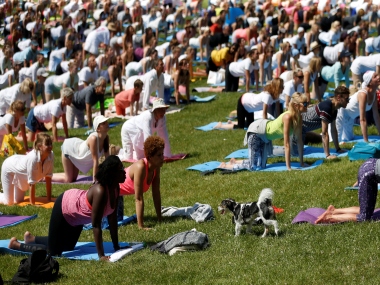 With yoga firmly cemented in contemporary culture, there have been variations and offshoots over time that have taken the practice into new and sometimes bizarre territories. From yoga with beer and chocolate (which some purists might say entirely defeats the purpose) to asana time with your pets — International Yoga Day seems like a good time to run through a list of all the strange fads out there. And step one for all these yoga types? Forget the concept of embarrassment! Let’s begin: [caption id=“attachment_3456230” align=“alignleft” width=“380”]