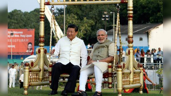a lavish Gujarati dinner on the menu as well with over 150 dishes. Of course when two leading dignitaries of a state meet, the most fun bit are the photos and in the case of this meeting too the photos were the best thing. So we decided to get our users to come up with some funny captions for these five photos. Here are the photos, followed by the caption and Twitter user’s handle and the one they sent. [caption id=“attachment_1718279” align=“alignnone” width=“620”] The Sultans of Swing? PTI[/caption] Captions: “President Xi Jinping …Jumping…Jhapak…” by @the_mantle_buoy “Koi dhakka to do bhai…” by @JhatkaDr (somebody give this a push) [caption id=“attachment_1718299” align=“alignnone” width=“620”]
