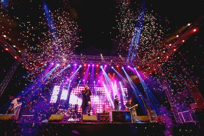 High points from Day 2 of Mood Indigo: Clinton Cerejo Band performs on stage; Aiyaary team interacts with students at IIT-B. All images courtesy Twitter/@iitb_moodi[/caption]