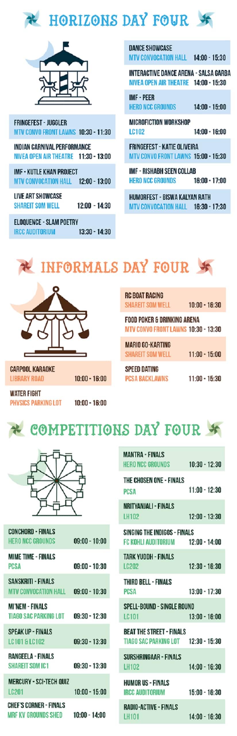 The gig should be the perfect ending to a four-day celebration that truly has been, as MoodI’s tag line promised this year: ‘La Fête Carnaval’. Until December 2018! Here’s a look at the complete schedule for Day 4 of Mood Indigo. For more information, log on to moodi.org: