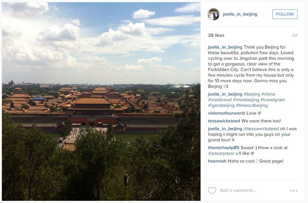 study report. Meanwhile, Instagram was flooded with images of the clear, pristine park, while users described the view as, “gorgeous view of the Forbidden city.”