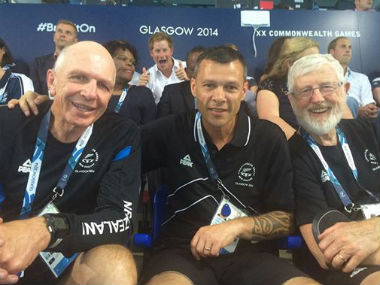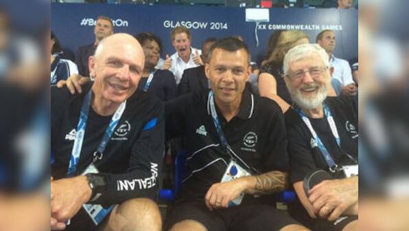 Wellington: Britain’s Prince Harry has followed his grandmother Queen Elizabeth II into the photobomb craze, giving the thumbs up in an image of acclaimed New Zealand rugby sevens coach Gordon Tietjens at the Commonwealth Games. Just days after the queen was snapped beaming in the background as Australian hockey players Jayde Taylor and Brooke Peris took a selfie, the 29-year-old prince popped up as Tietjens was being photographed at the swimming pool. Tietjens, New Zealand deputy chef de mission Trevor Shailer and sports psychologist Gary Hermansson were photographed as they sat a few rows in front of the prince, his brother Prince William and Catherine, the Duchess of Cambridge. [caption id=“attachment_1639305” align=“alignleft” width=“380”] Prince Harry seems happy to photobomb. Image from Sport Manawatu Facebook page.[/caption] In the photo, taken by former New Zealand hockey player Bevan Hari and posted on the Sport Manawatu Facebook page, Harry is seen laughing and giving a double thumbs up. “Photo of the day,” Shailer wrote on the Facebook page. “A Royal photo bomb by Prince Harry with Titch (Tietjens) and Gary Hermansson at the swimming venue tonight.” AFP