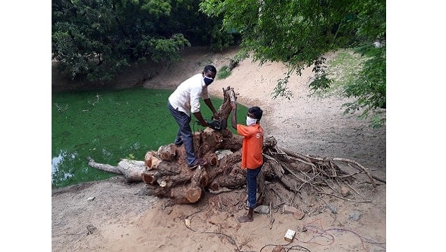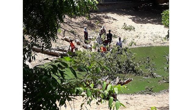 Old-growth trees are priceless and I’m not talking about money, but eye and mind candy, and carbon mulching. (And certainly more difficult to grow than crocodiles.) So it was a sad event for us when this old giant in one of our croc pens came down on the night of 11 June, in one of those intense localised wind storms that are becoming more and more frequent around the world. It was a rain tree, planted in the early days, so at least 40 years old. It had become a rookery for egrets and herons and perfect basking spot for the 25 resident marsh crocodiles. It fell half on land and half in the pond. Cutting and removing the branches was a challenge because of the social distancing and other safety issues for staff, and we finally decided to leave the larger logs in the water and only remove the ones on shore. As always, our staff were innovative, motivated and animal-centric, making sure there was minimal disturbance to the inmates of the enclosure even if it meant working in the heat of mid-day when the animals were in the water.