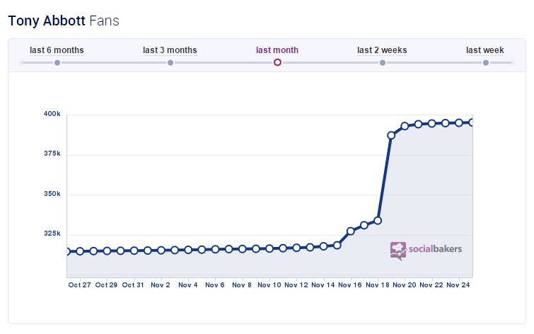 However PM Tony Abbott’s new India audience accounts for only 15.5% of his total audience. [caption id=“attachment_1821031” align=“alignnone” width=“620”]  Image: Social Bakers[/caption] When asked about the speculation, a spokesman for the Prime Minister told news.com.au the reason for the high number of offshore likes was not true. “No ‘likes’ or advertising have been purchased for the Prime Minister’s Facebook page. It is no secret that the Prime Minister hosted a number of world leaders in recent times, including Indian Prime Minister Narendra Modi. These visits attracted large international audiences to the Prime Minister’s social media channels, thus generating a spike in organic engagement with the page.” However, it has been suggested by various media groups that it’s PM Modi’s 25 million Facebook fans and eight million Twitter followers who are to thank for this sudden spike. Modi was considered one of the most mentioned leader on social media during the G20 summit earlier this month. The selfie with Mr Abbott posted to Facebook with a link to the latter’s official page was also shared more than 11,600 times. Abbott and Modi also exchanged pleasantries on Twitter with several pictures of them hugging each other providing proof of the friendship between the leaders.