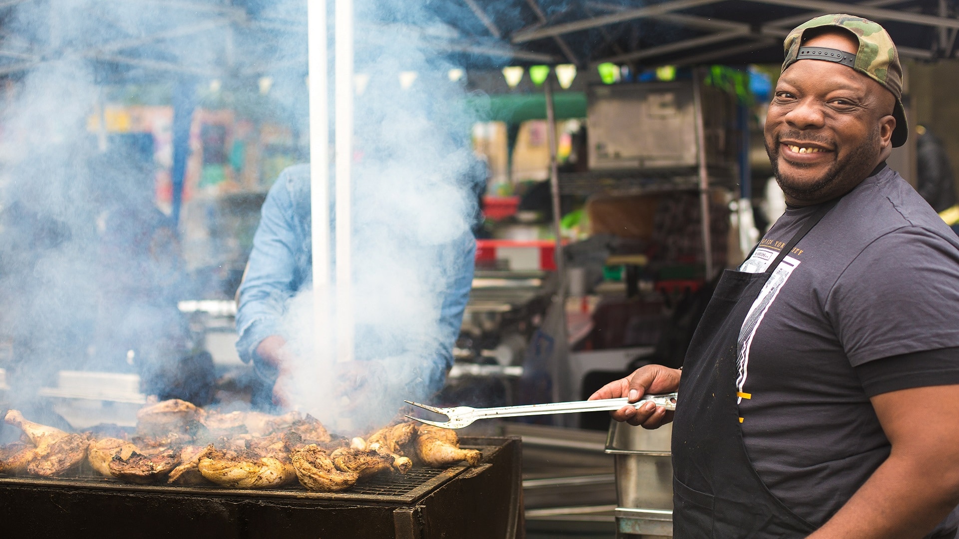 [/imgcenter] A chef preparing traditional Jamaican jerk chicken, which must be the most popular dish at the Carnival. [imgcenter]
