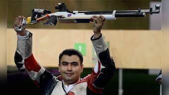 Indian shooter Gagan Narang poses for photographs after winning bronze in 10m air rifle event at the Olympic Games 2012. PTI