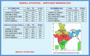 Rainfall metrics for the north east monsoon season so far in the four homogeneous regions of India[/caption] Subdivision wise seasonal rainfall figures • Southern Peninsula: Actual 227.9mm against the average of 219.4mm, +4% departure from normal. • East & North East India: Actual 164.8mm against the average of 140.0mm, +18% departure from normal. • North West India: Actual 79.5mm against the average of 29.0mm, +174% departure from normal. • Central India: Actual 93.5mm against the average of 67.2mm, +39% departure from normal. [caption id=“attachment_11665111” align=“alignnone” width=“497”]