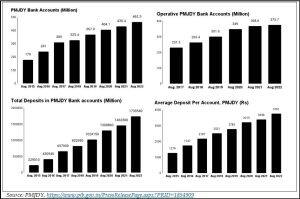 Banking for the Poor: India’s Financial Inclusion Revolution (2015-2022)[/caption] These are mind-boggling numbers. If you count operative accounts, i.e., those that have had a transaction within the last two years, they amount to 375.5 million. Again, that is more than the population of the United States and Australia put together. Overall, between 2015 and 2022, account numbers increased three-fold, and the money in these increased by over seven times. Numbers like these on banking for the unbanked explain why drum-beaters for financial inclusion have been excited about India. It is also why the