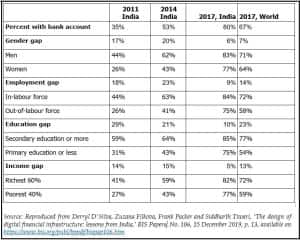 in a 2021 working paper (by Yan Carriere-Swallow, V Haksar and Manasa Patnam), the excitement accrued from the fact that the introduction and expansion of the Jan-Dhan Yojana “coincided with a period of rapid increase in financial access, in which the percentage of [Indian] adults with a bank account increased from 35 per cent in 2011 to 80 per cent in 2017.” The IMF emphasised that this was possible essentially because of “the development of the digital infrastructure”, including an interoperable payments system, a universal digital ID, and other features. “India’s journey in developing world-class DPI (digital public infrastructure)”, the IMF research argued, “highlights powerful lessons for other countries embarking on their own digital transformation.” The Bank of International Settlements (BIS) reached a similar conclusion in 2019. It noted in a detailed paper on the “lessons from India” on the design for financial infrastructure that “India offers an example of how various policy reforms related to digital finance —including transformation of the traditional banking system with the central bank playing a pivotal role — can solve many of the challenges of inclusive financial development that once seemed out of reach. It also offers insights into how the regulator (e.g. the central bank) and the regulated (e.g. commercial banks) can together run a payment system that operates around the clock, throughout the year, is open to participation of firms ranging from boutique fintechs to big techs and provides all the network benefits that big tech systems usually provide, but settles instantly in fiat money inside the central bank.” [caption id=“attachment_13098872” align=“alignnone” width=“699”]