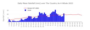- Southern Peninsula: Actual 203.4 mm against the average of 262.3 mm, -22 per cent departure from normal.
